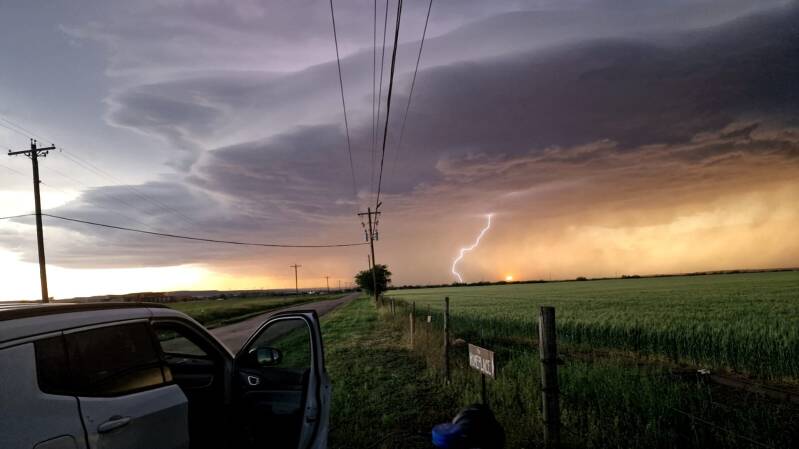 Ein krönender Abschluss dieses Tages mit Sonnenuntergang und Blitz - was will man mehr? Das Gewitter hat alle Erwartungen übertroffen. Der Start war schwierig, welche Zelle würde das Rennen machen? Am Ende gab es den alleinigen Chef auf dem Platz, den wir lange verfolgen konnten und zahlreiche Bilder schießen und Videos drehen konnten. Es müssen nicht immer die groß angekündigten Ereignisse sein, die ein schönes Chasing ermöglichen!