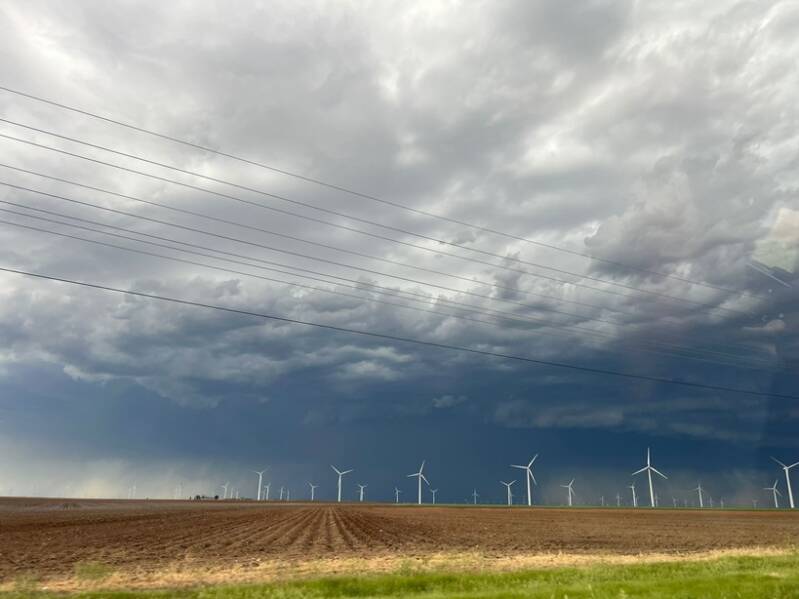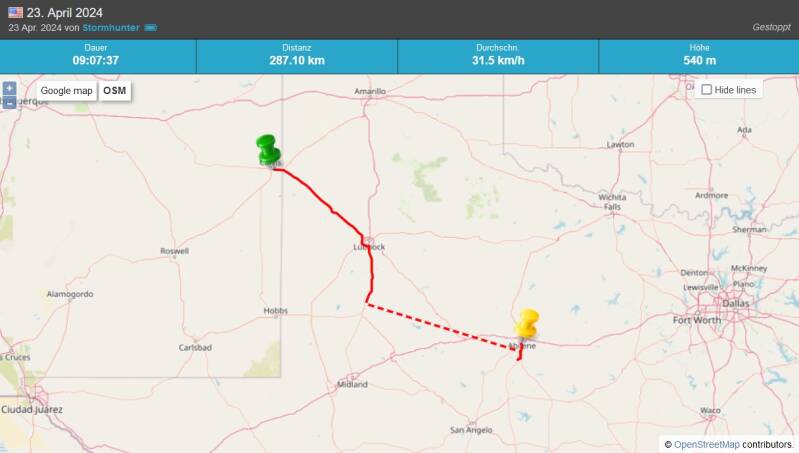 Es hat ausgelöst. Die Kaltfront befindet sich bereits deutlich südlicher als geplant. Wir bewegen uns Richtung Süden in Richtung Tahoka.