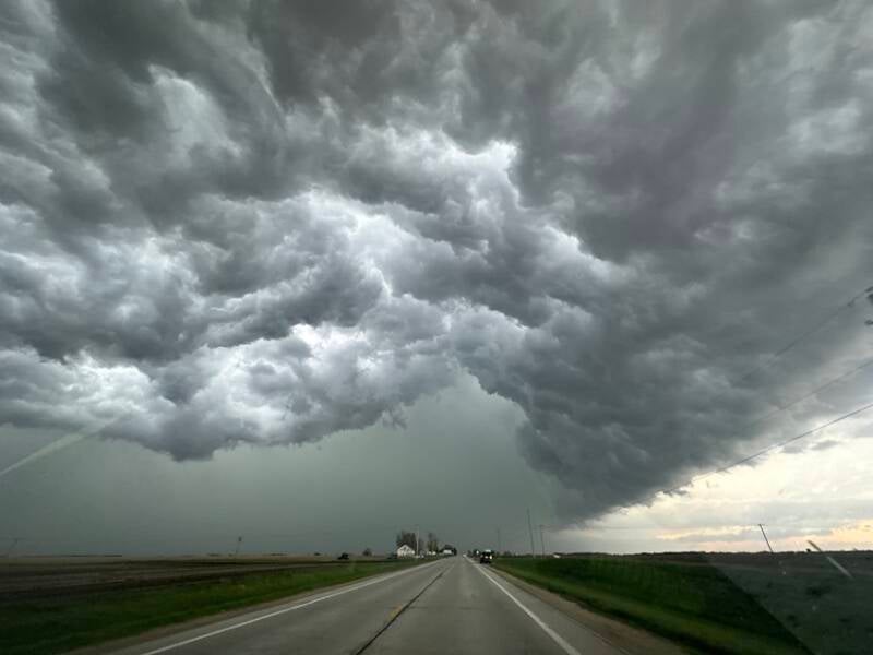 After a short night's rest, we continue to the northeast. A thunderstorm complex lies ahead of us. The sky is blue and the sun is shining brightly. This will change drastically in the next 30 minutes. We will try to broadcast live again in a few hours.