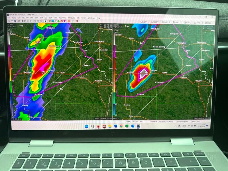 Sometimes you have to do 100 things at the same time. Nowcasting, forecasting, navigating roads, filming/photographing and keeping you up to date on the internet. Thanks for all your reactions. The cells are moving northeast. We have to zigzag along the cells because the road goes east then north then east then north. It's a matter of luck what we'll see today. You can see a nice wall cloud on the video. Maybe there will be a tornado today! Fingers crossed :-)